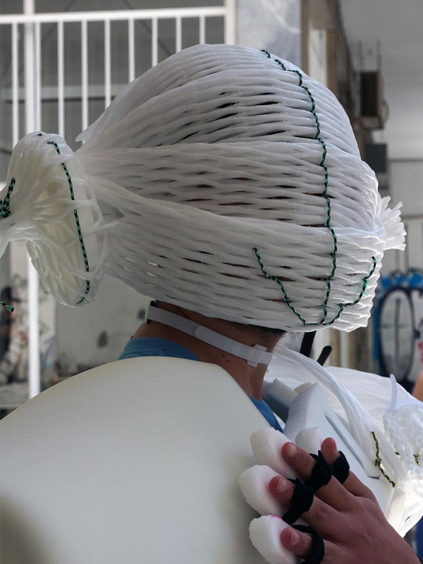 Through the act of weaving, the piece embodies care as a tactile, collective,